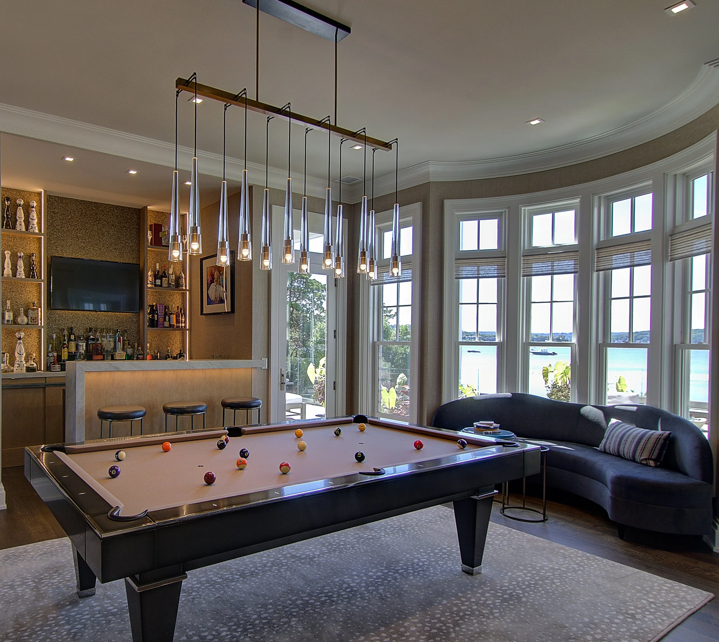 That’s hard to pinpoint without more information. I discuss an estimated budget with each client very early on in the process so that there are no surprises. Typical single-room décor projects for us range from $20,000-$50,000. It depends on the size of the space, the level of customization, the quality of furniture and finishes that are specified along with any construction and custom carpentry needs of the project. I’m a big fan of putting a client’s money into the aspects of the room that are most important to them and then budgeting elsewhere in the space.